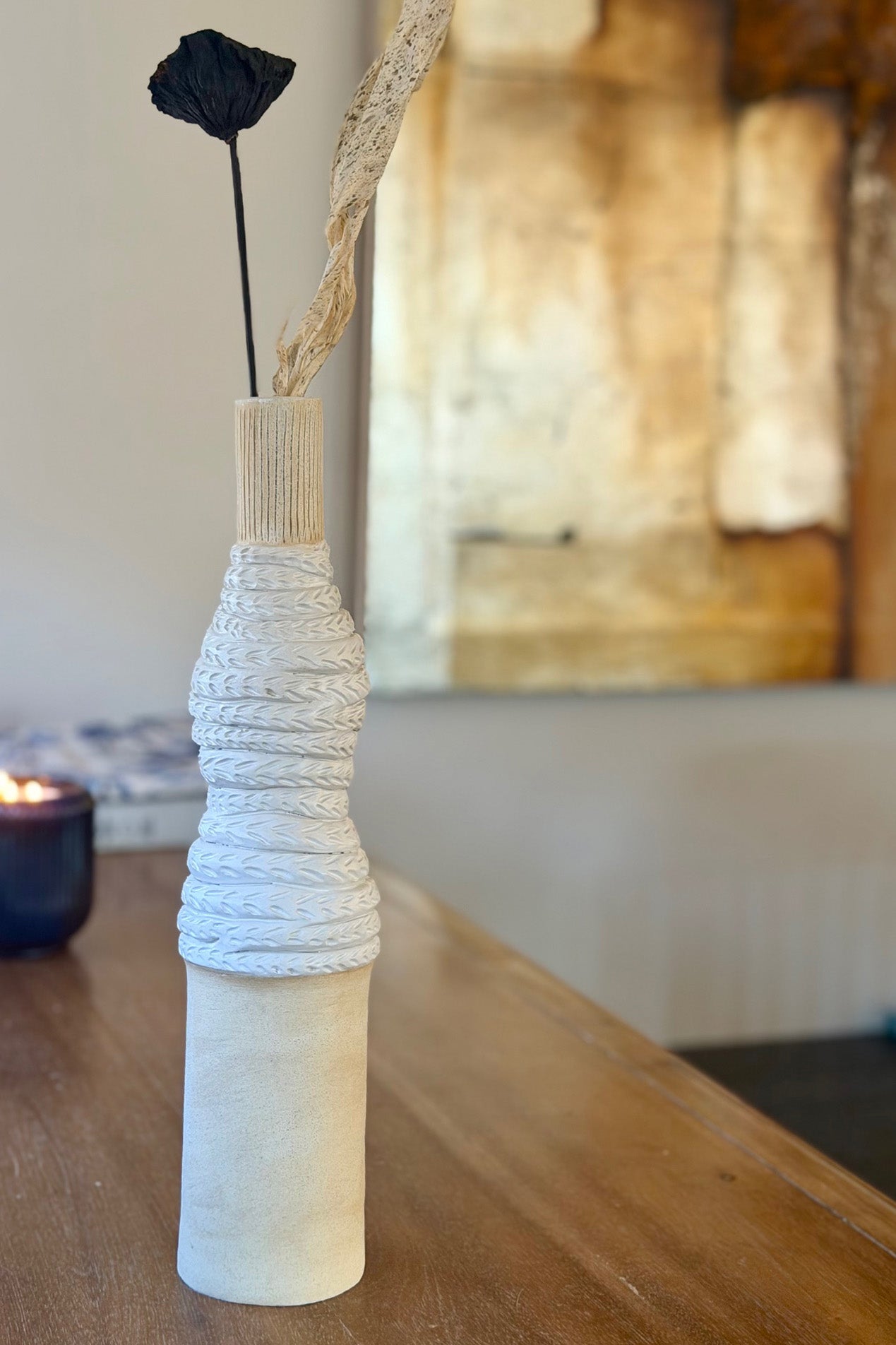 These vessels are sculptural objects designed for dried florals. No two are exactly alike, echoing the individuality formed through human connection.