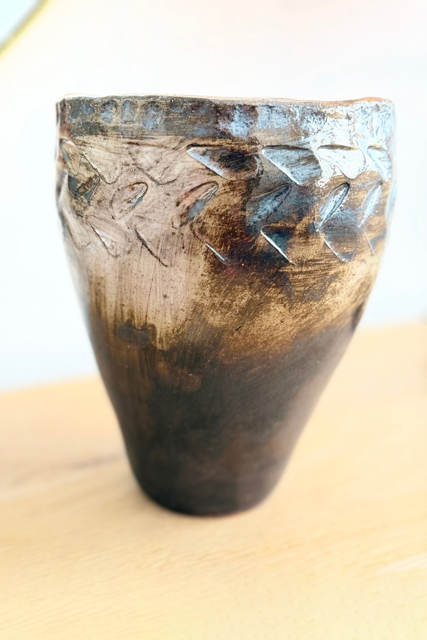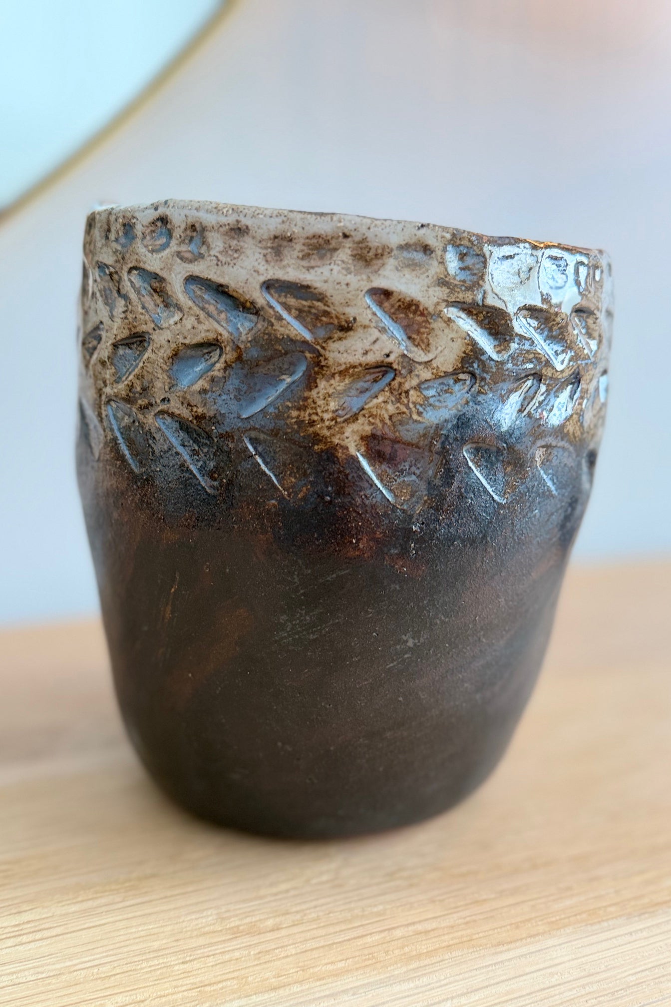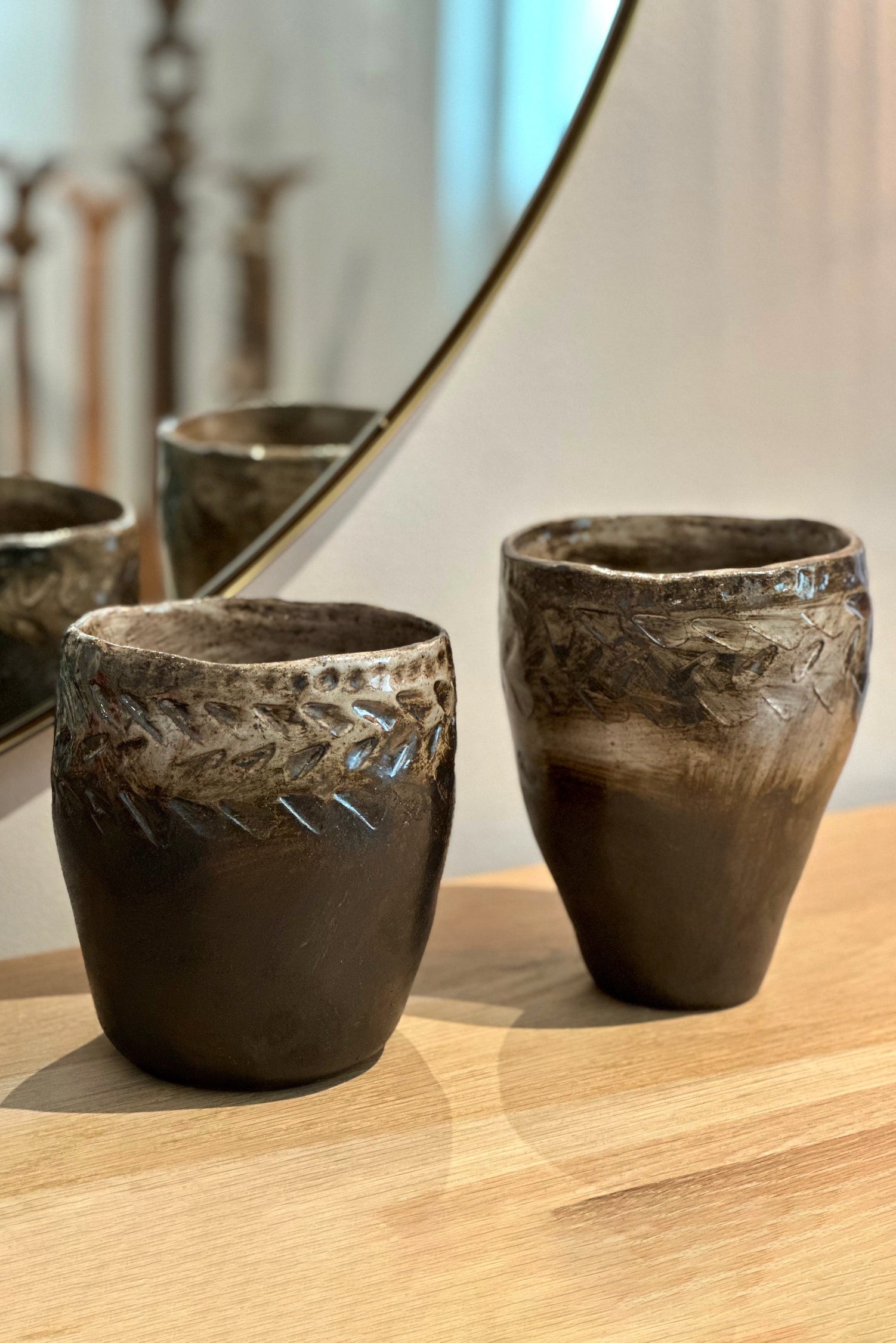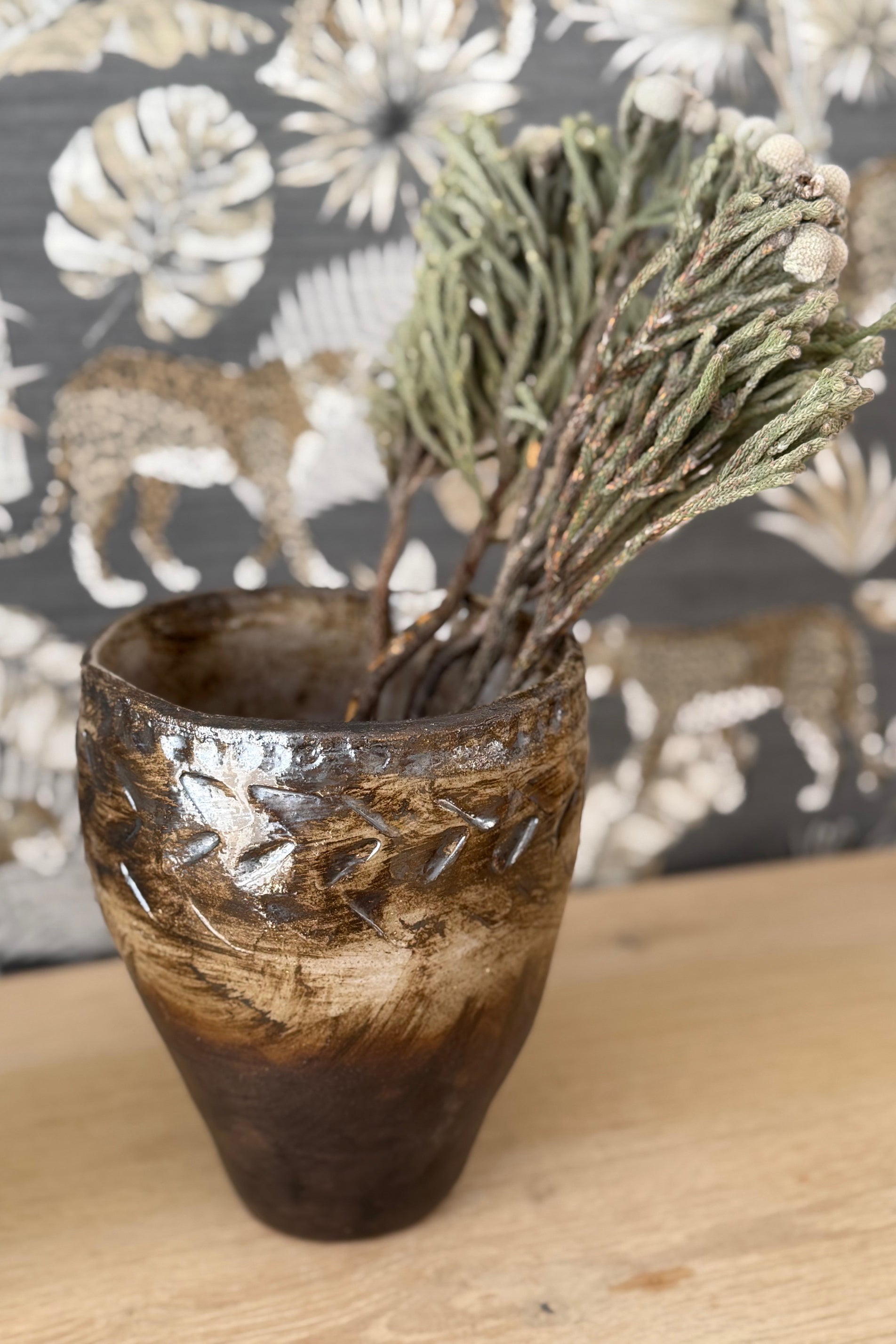 Drum-shaped ceramic vessels - handmade with a rustic, tactile finish, celebrating natural texture and earthy form. Each piece reflects the artisan process, with subtle variations and imperfections that make every vessel unique. These vessels bring a warm, rustic charm to any space, blending function with artful design.