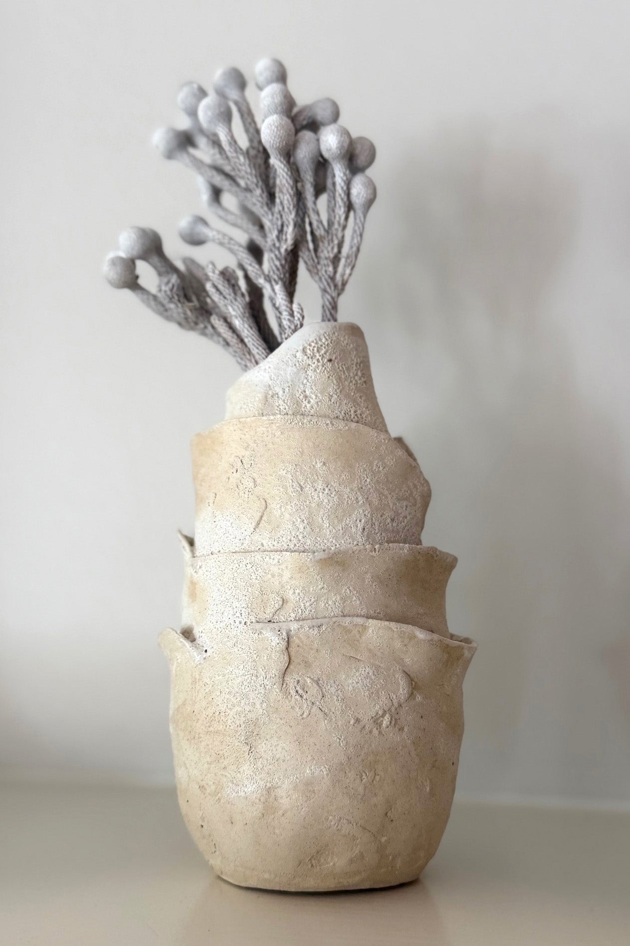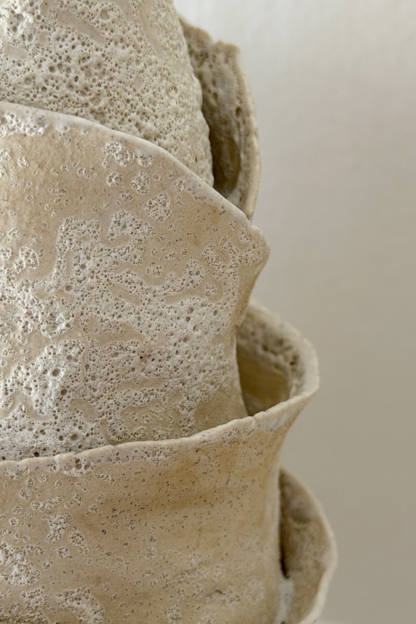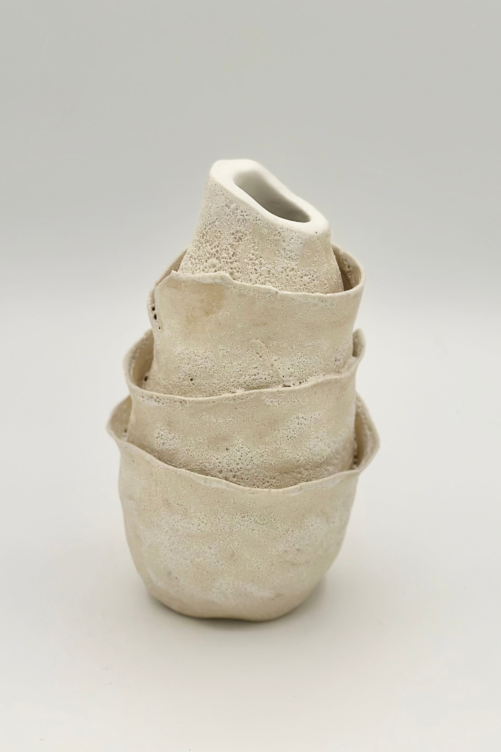 These vessels echo the quiet architecture of a shell - layered, fractured, and shaped by unseen currents. Uneven edges speak of slow erosion, not destruction, but transformation. Like fragments along the shoreline, they hold the memory of what was once whole. Time, salt, and silence have revealed beauty not in spite of brokenness, but because of it.