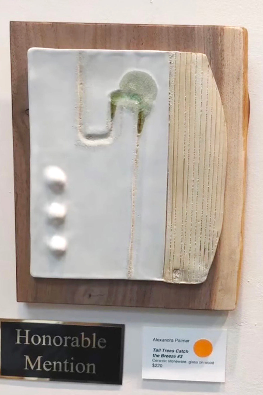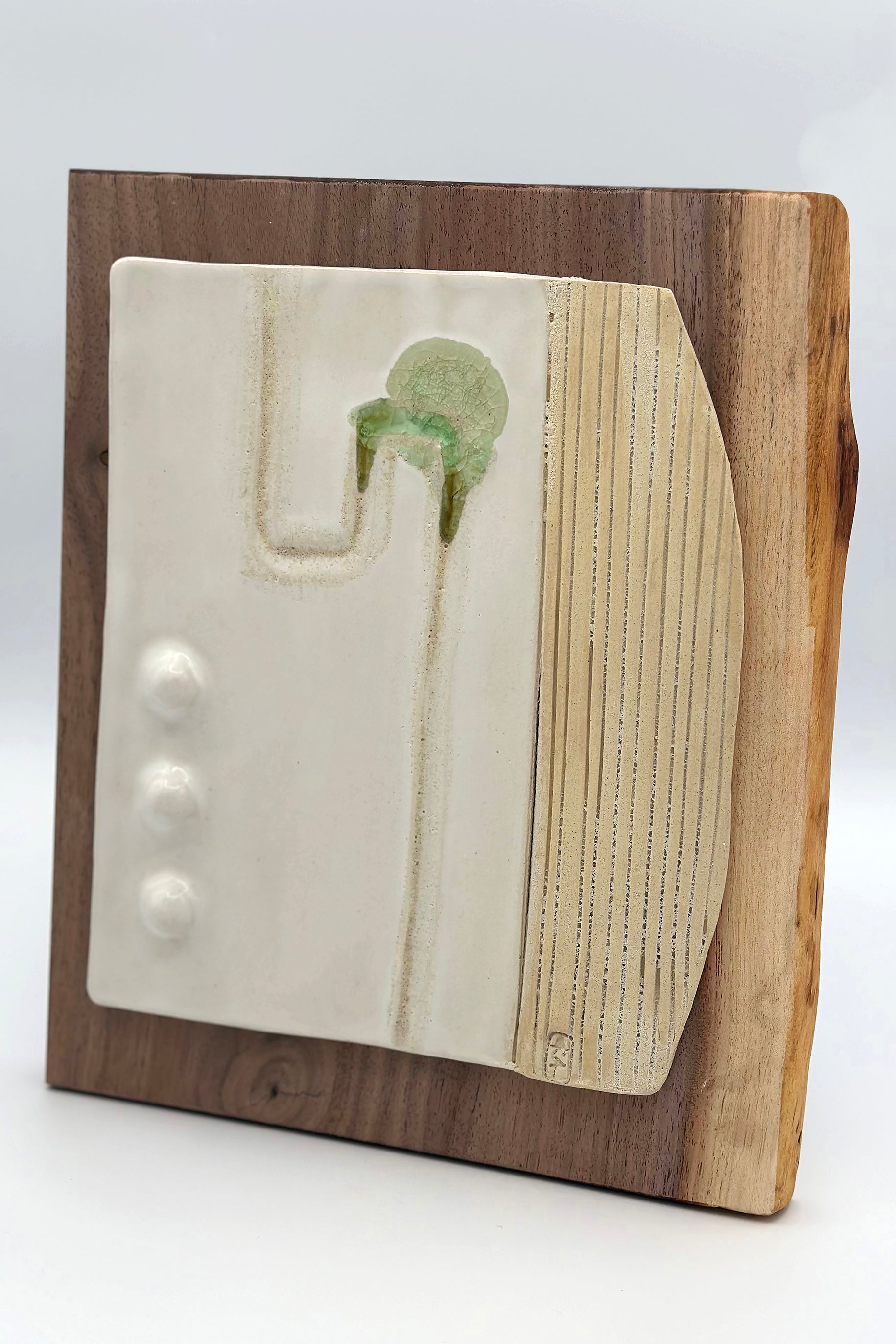 Stoneware, sea glass, glaze & walnut wood