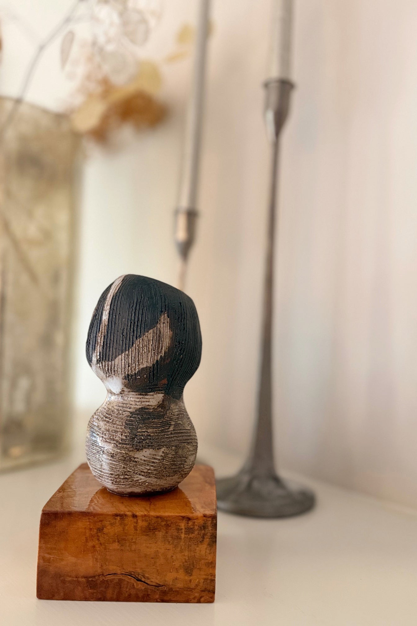 Earthenware, glaze & maple wood